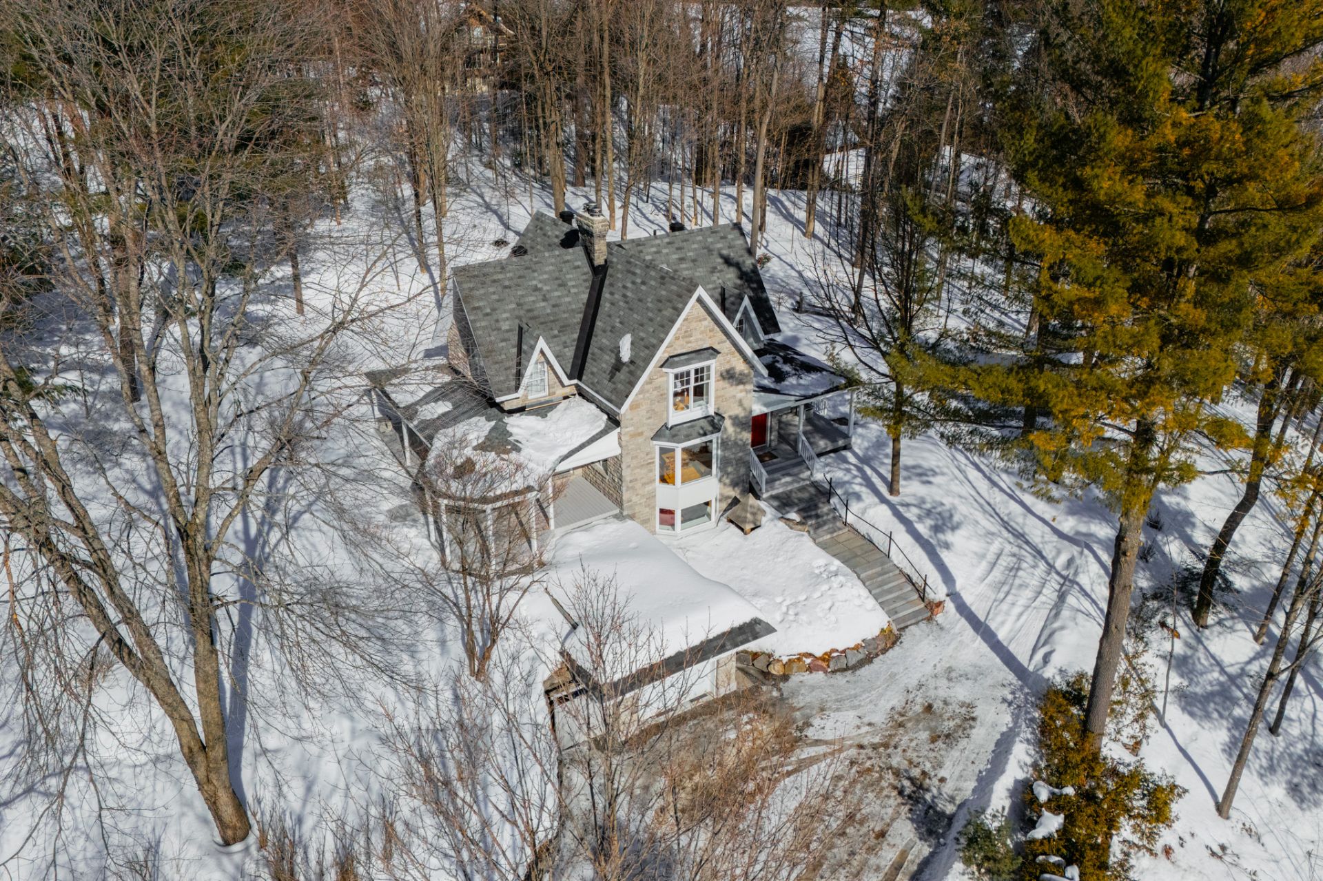 -Varied landscaping: mature forest, shrubs, exotic trees,