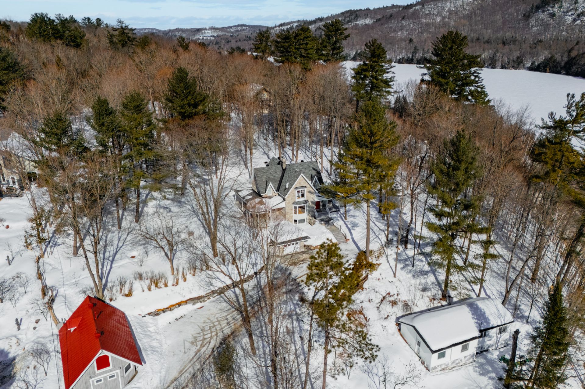 -Quiet area perched above Chemin de la Rivière with low