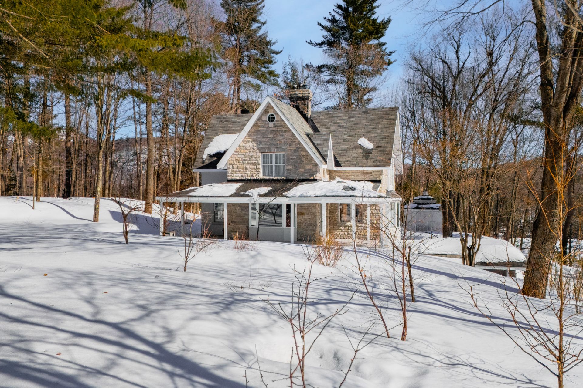 ESCAPE TO THE COUNTRY... Exceptional property in Chelsea with panoramic views of the Gatineau River. Southern exposure, bright and inviting. Private, expansive and peaceful lot. Architect-designed two-storey home with unique character, never offered on the market in the past 45 years. 4 bedrooms, 3 bathrooms and 1 powder room. Stunning central stone fireplace on the main floor. Over 3,100 sq. ft. of living space including a finished basement with direct access to the attached garage.Terraces with breathtaking views. Versatile detached studio/workshop with multiple uses, Impeccably maintained, turnkey property. Only 24 minutes from Ottawa!