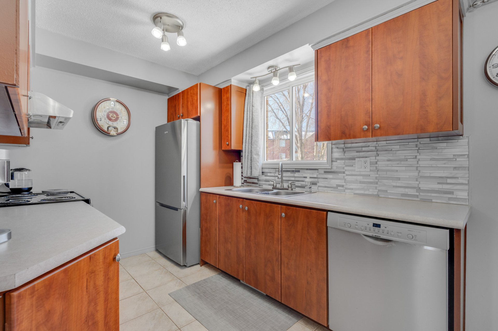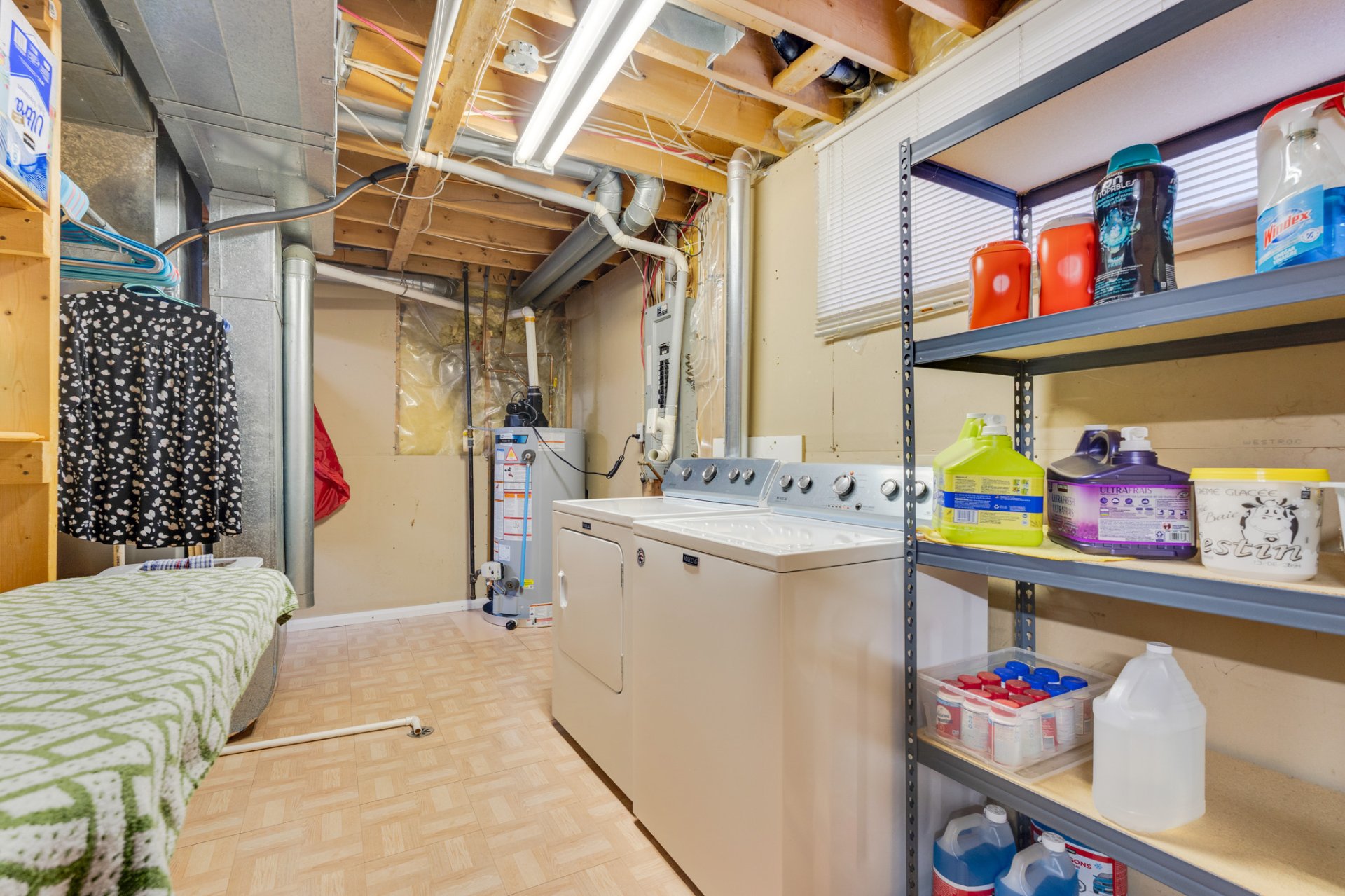 | Frigidaire, cuisinière, lave-vaisselle, laveuse, sécheuse, remise, air climatisé central, stores. | |