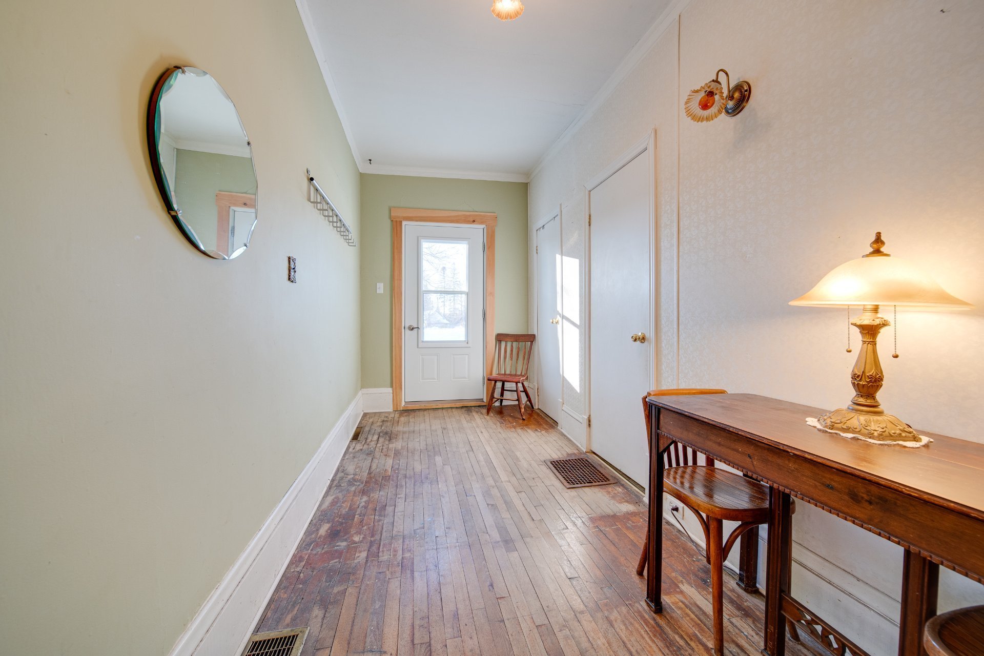 | Hall d'entrée | 6.4 x 26.9 P | Rez-de-chaussée | Bois |